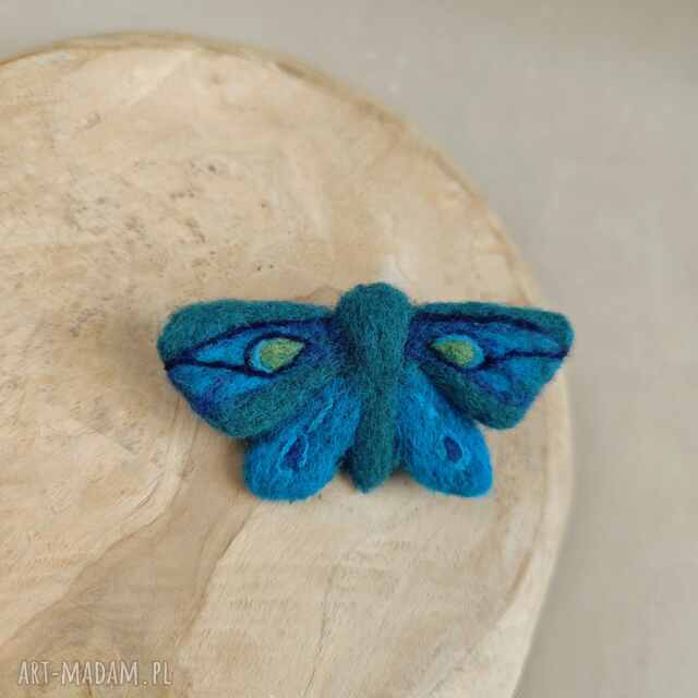 handmade ćma szmaragdowa - broszka filcowana