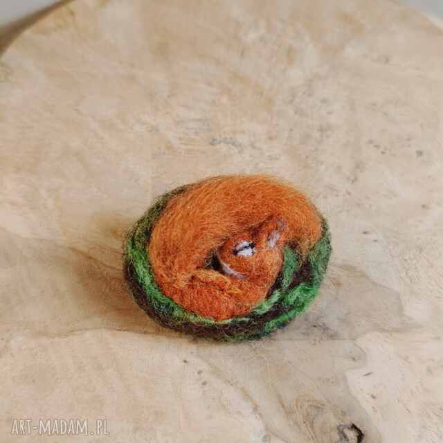 szybka wysyłkaBroszka filcowana - śpiacy lisek. Mała urocza broszka wykonana z wełny w technice filcowania na sucho, - 114,00 zł