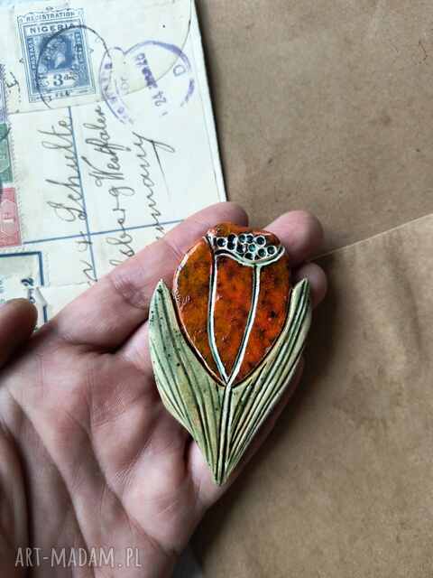 Koteczek z czerwonym akcentem. Kotek w formie broszki wykonany z gliny szamotowej, wypalony na biskwit, O wymiarach ok; 4 cm x 7 cm89,00 zł