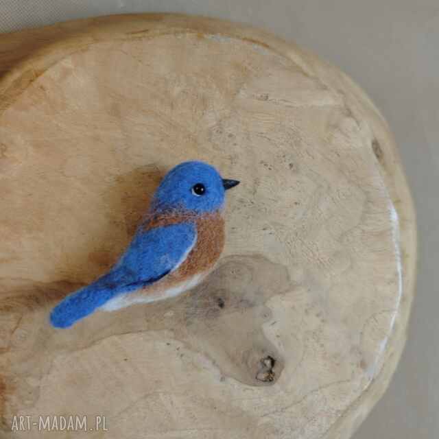 ręcznie zrobione błękitnik rudogardły - broszka filcowana