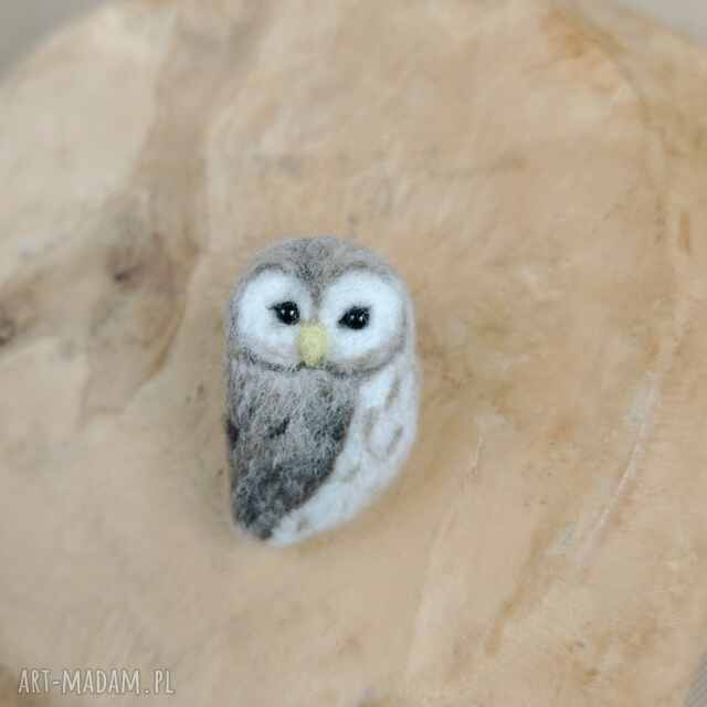 handmade sówka puszczyk kreskowany - filcowania broszka
