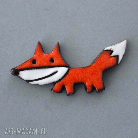 Lisek-broszka ceramiczna. Brązowy - Śliczna broszka ceramiczna lisek w odcieniach pomarańczu, Wielkość 5,7 cm x 3,5 cmsprzedane