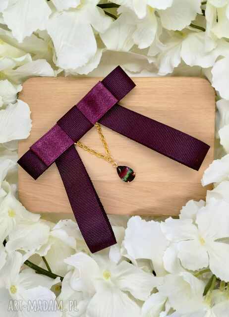 Czarna broszka kokarda w gwiazdki z dużą cyrkonią. Broszki handmade Czarna broszka kokarda w gwiazdki z zawieszką z cyrkonią to niepowtarzalna ozdoba, Lekka50,00 zł