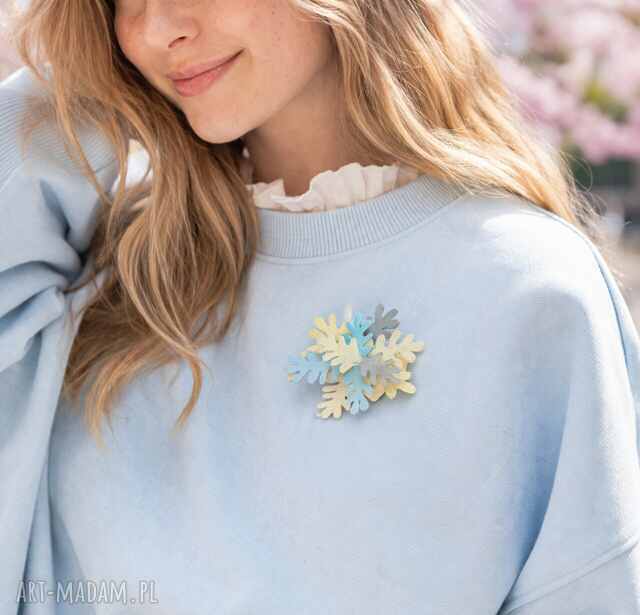 Ręcznie wykonana broszka w subtelnych, pastelowych odcieniach to idealny dodatek dla miłośniczek lekkich i kobiecych stylizacji. Jej organiczny, inspirowany naturą kształt przyciąga wzrok i pięknie komponuje się z jasnymi tkaninami - szczególnie z wiosennymi bluzami, swetrami czy płaszczami.