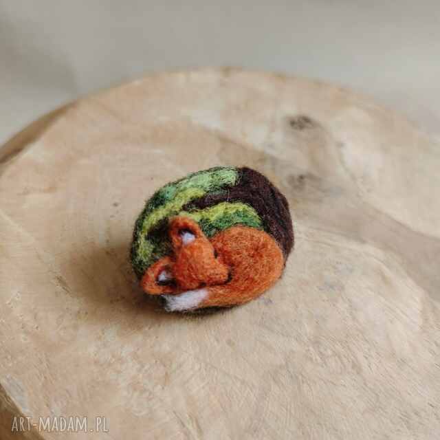 ręcznie zrobione broszka filcowana - śpiacy lisek