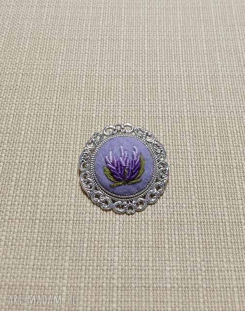 szybka wysyłkaRęcznie haftowana broszka gloria. Broszki na filcu Zepnij nią szal lub chustę albo po prostu wepnij w klapę marynarki, Broszka jest lekka129,00 zł