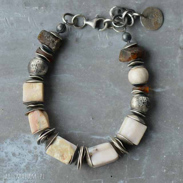 Srebrny naszyjnik z bursztynem. Naszyjniki handmade Masywny naszyjnik jest wykonany ze srebra 925 oraz pięknych, Wielkość walca to ok1350,00 zł